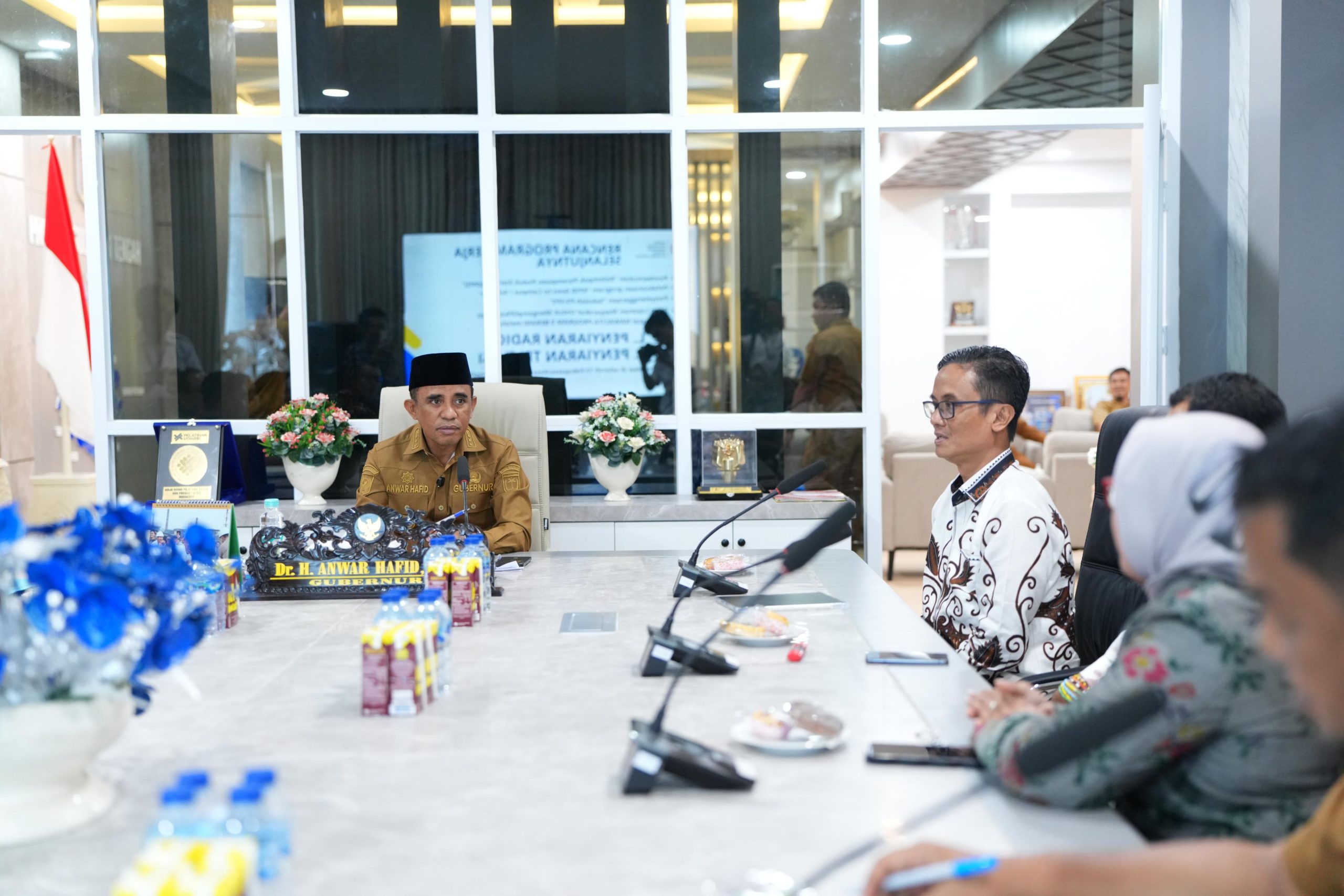 PALU – Gubernur Sulawesi Tengah, Dr. H. Anwar Hafid, M.Si., menerima audiensi Komisi Penyiaran Indonesia Daerah (KPID) Sulawesi Tengah di ruang kerjanya pada Senin (15/9/2025).