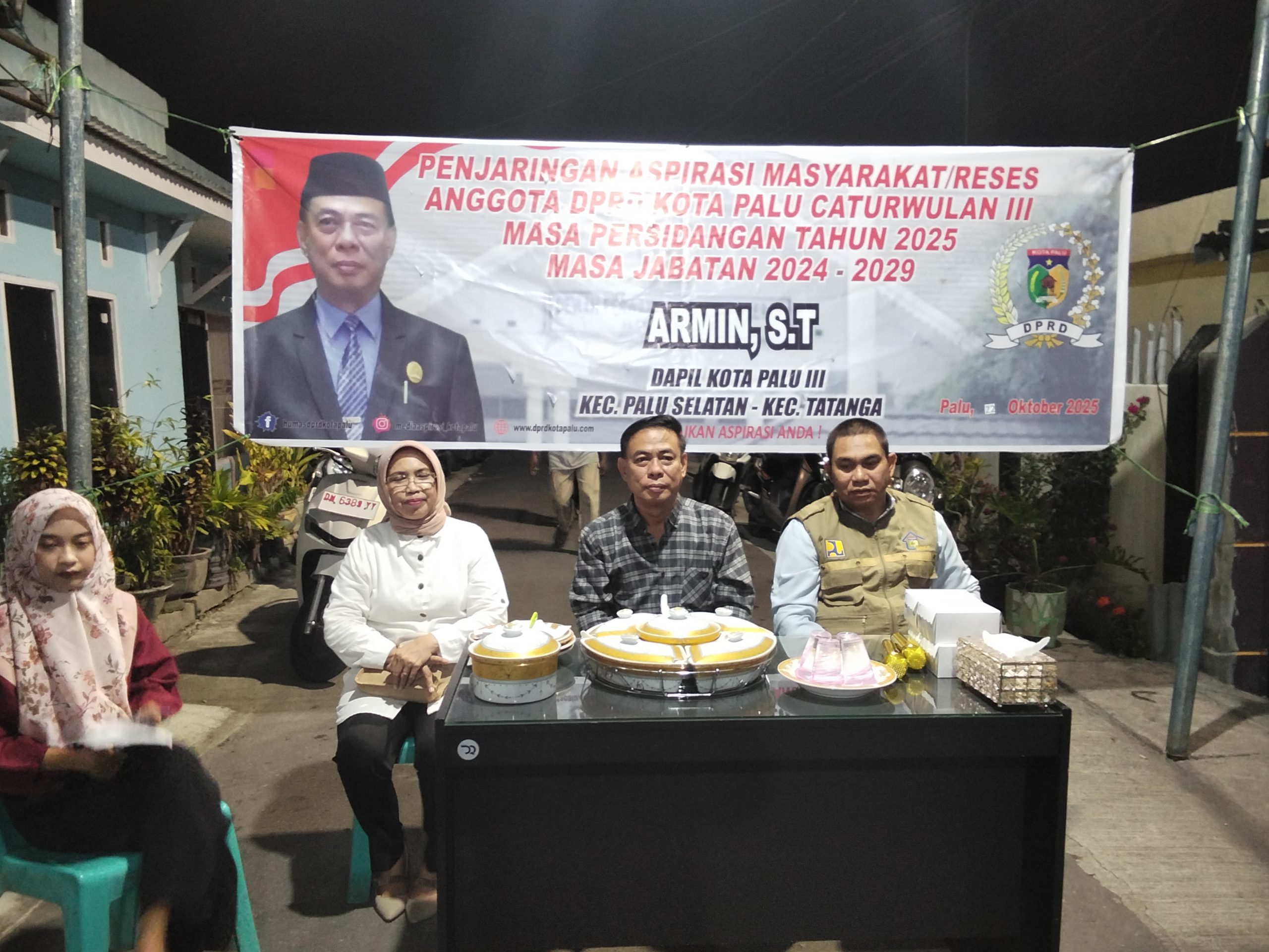 PALU – Anggota DPRD Kota Palu, Armin, ST, melaksanakan agenda penjaringan aspirasi masyarakat dalam rangka Reses Caturwulan III Masa Persidangan Tahun 2025, pada Rabu malam 21/10/25.