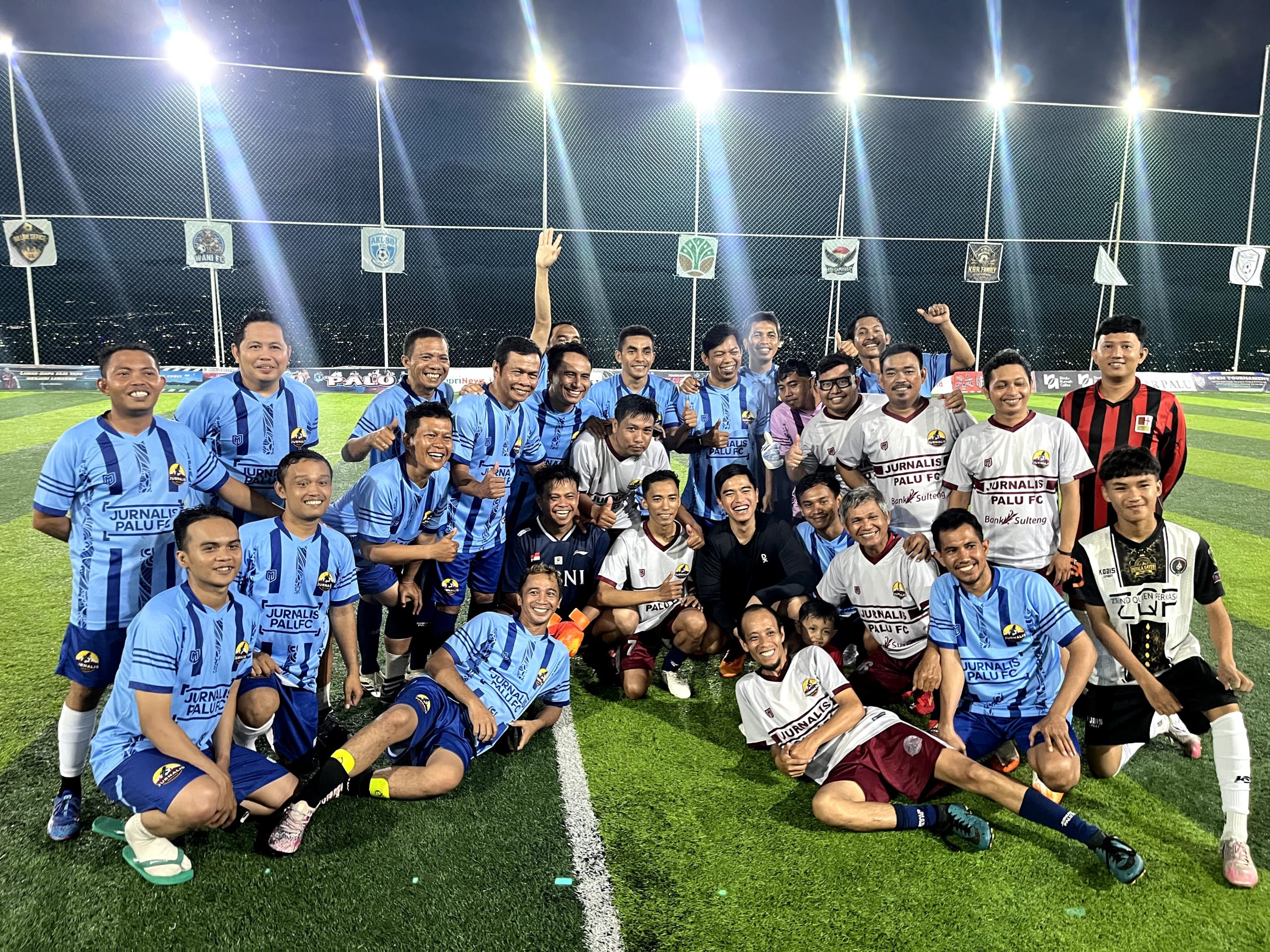 PALU — Ketua Umum Partai Solidaritas Indonesia (PSI), Kaesang Pangarep, turut ambil bagian dalam pertandingan mini soccer melawan Jurnalis Palu FC di Pintu Palu Arena, Rabu malam 19/11.