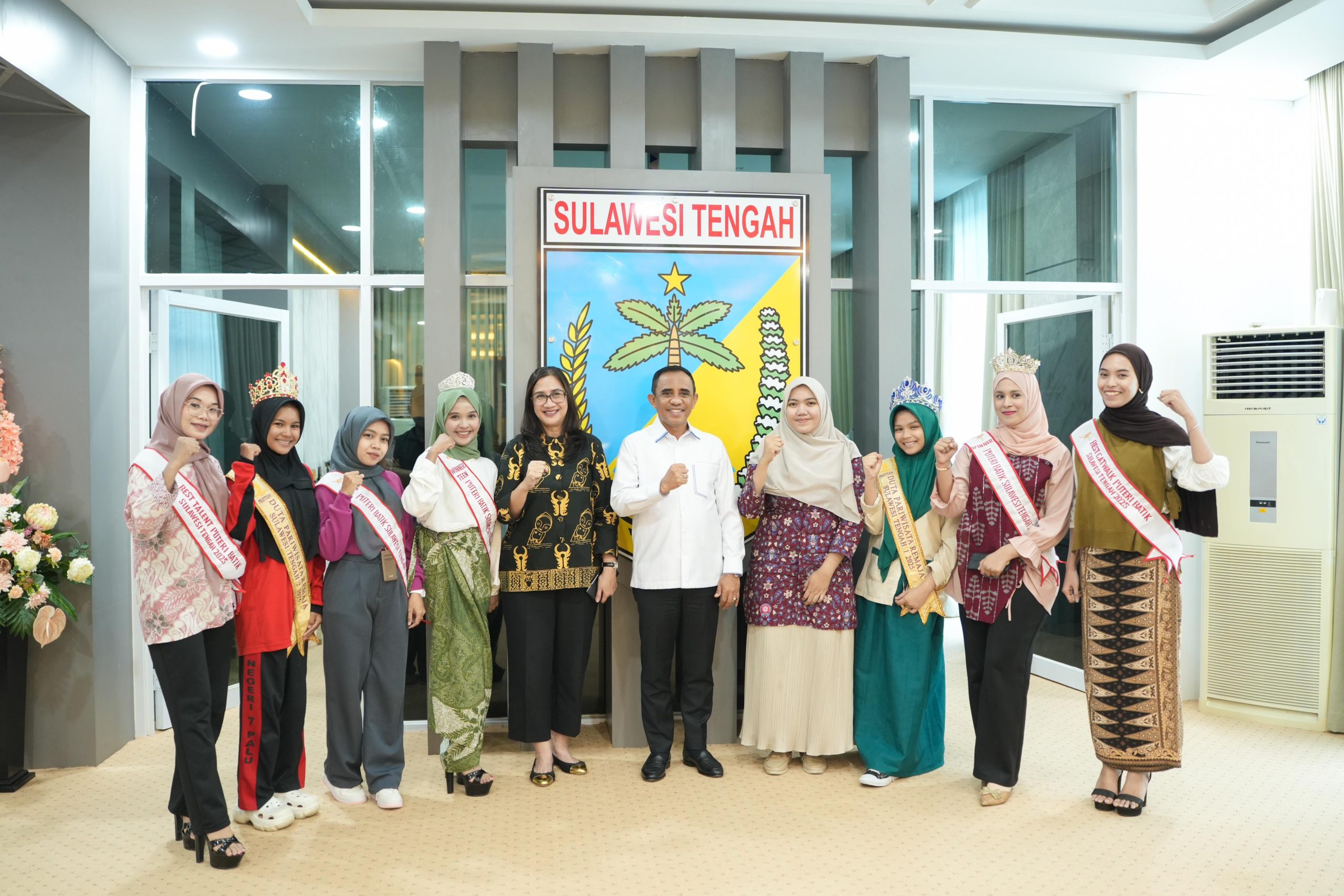 PALU – Gubernur Sulawesi Tengah, Dr. H. Anwar Hafid, M.Si, menerima kunjungan audiensi dari Kepala Dinas Pariwisata Provinsi Sulawesi Tengah, Diah Agustiningsih, bersama Duta Batik dan Duta Pariwisata Sulawesi Tengah, di ruang kerjanya pada Jumat (12/9/2025).