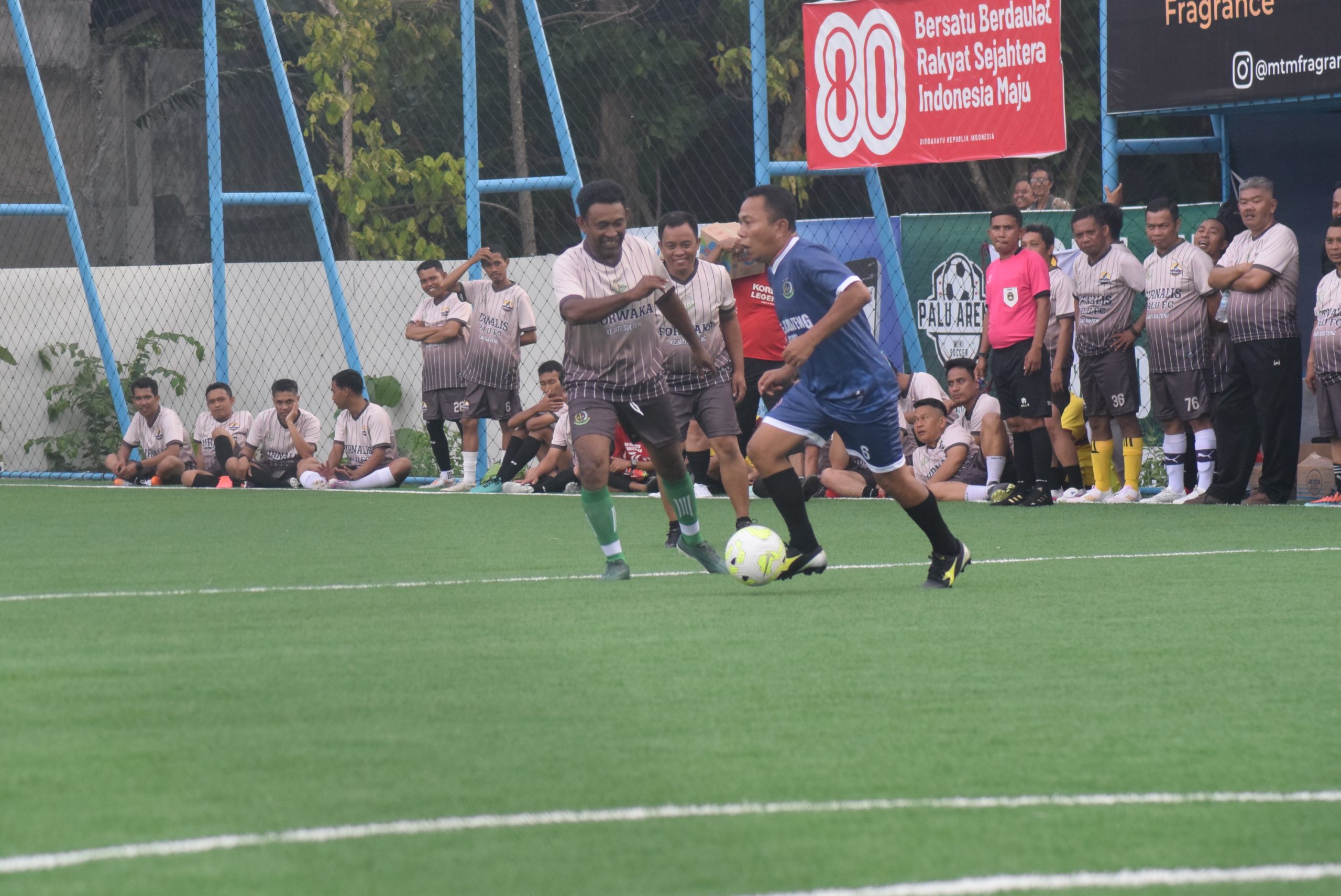 Sebelum kompetisi utama antar-Kejaksaan Negeri se-Sulawesi Tengah digelar, kedua tim jurnalis lebih dulu tampil dalam laga persahabatan.