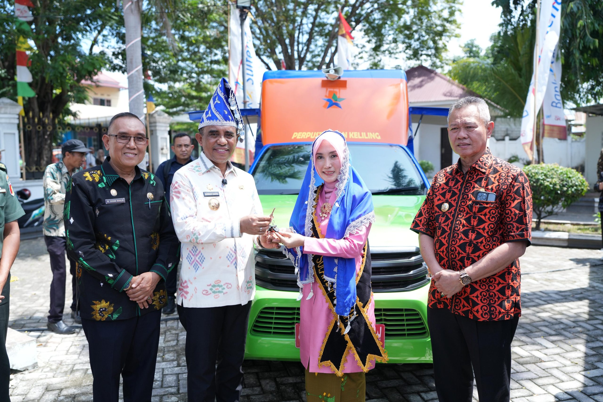 Ia juga menyerahkan satu unit mobil perpustakaan keliling sebagai bentuk dukungan pemerintah terhadap gerakan literasi di daerah.
