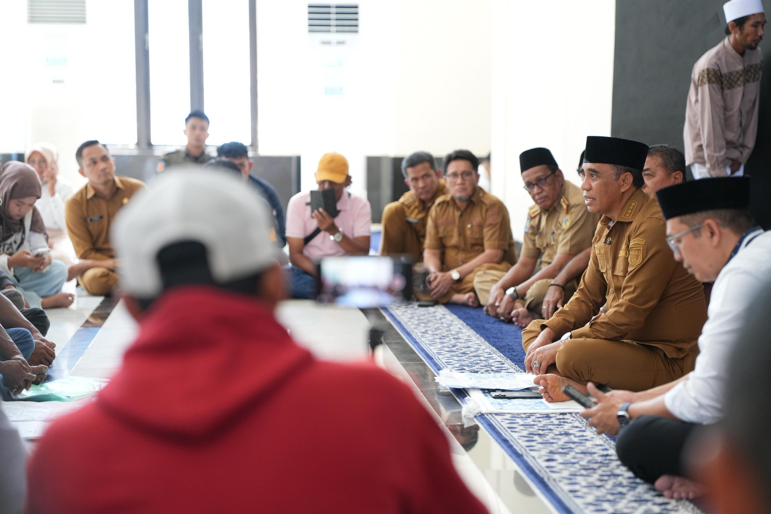 PALU – Gubernur Sulawesi Tengah Anwar Hafid menerima langsung aksi Aliansi Masyarakat Desa Loli Oge di halaman Masjid Kantor Gubernur Sulteng, Senin 29/12, usai salat Dzuhur. Aksi tersebut menuntut pencabutan izin tambang batuan mineral yang dinilai merugikan ruang hidup dan melanggar hak atas tanah warga.