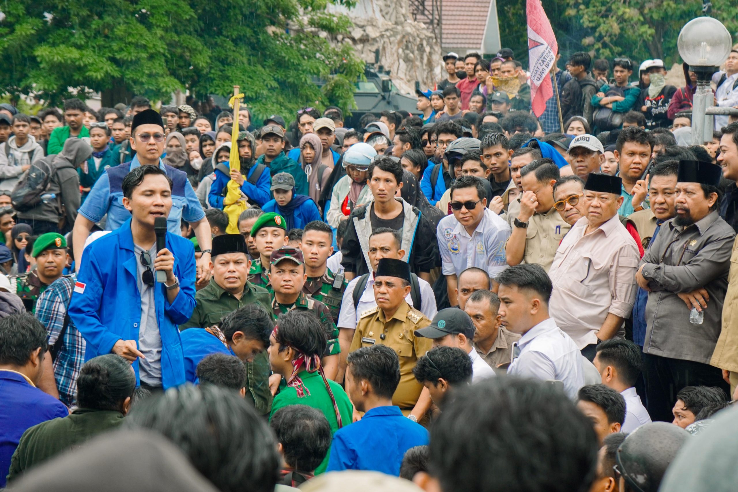 Suasana berlangsung kondusif ketika pimpinan DPRD bersama perwakilan massa aksi duduk bersama untuk mendengarkan aspirasi rakyat.