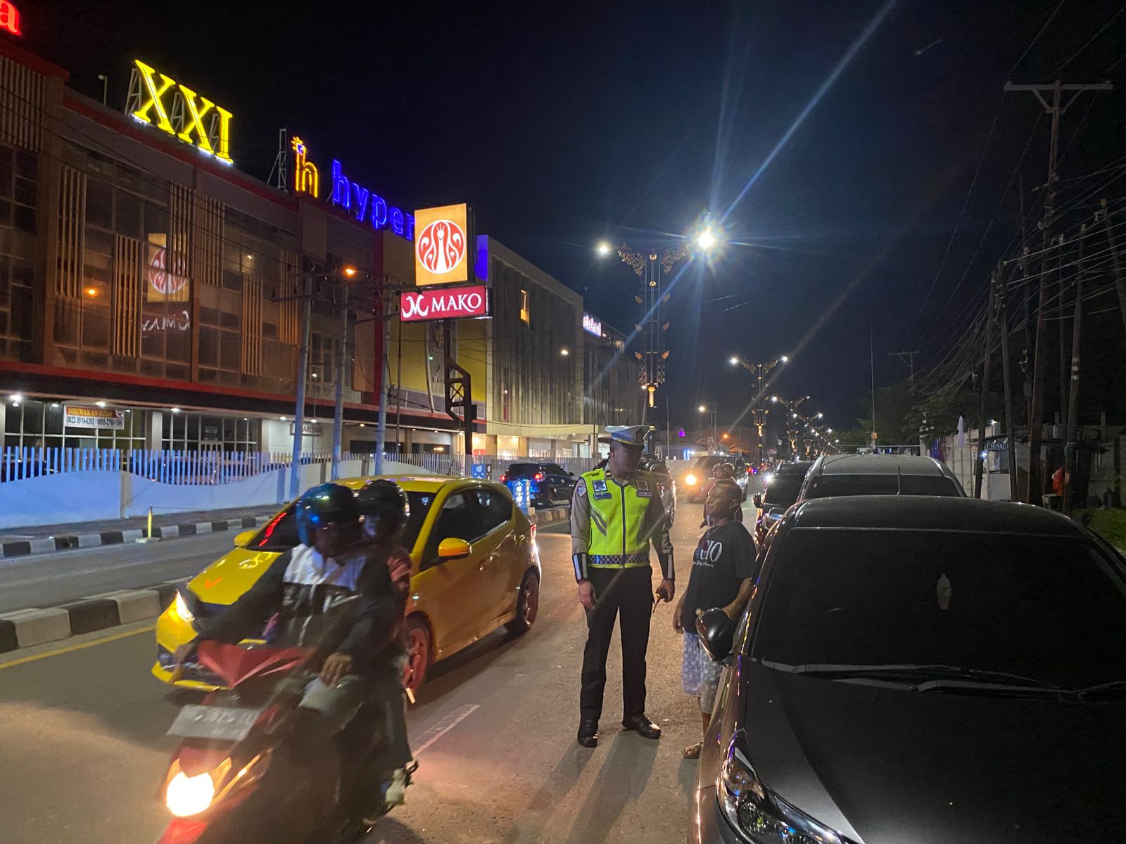 Pengamanan kemudian dilanjutkan pada malam hari mulai pukul 19.30 WITA. Subsatgas Patroli kembali melakukan penyisiran di kawasan Jalan Gatot Subroto, Jalan R.A. Kartini, dan sekitarnya guna memastikan situasi lalu lintas tetap aman dan tertib saat aktivitas masyarakat meningkat.