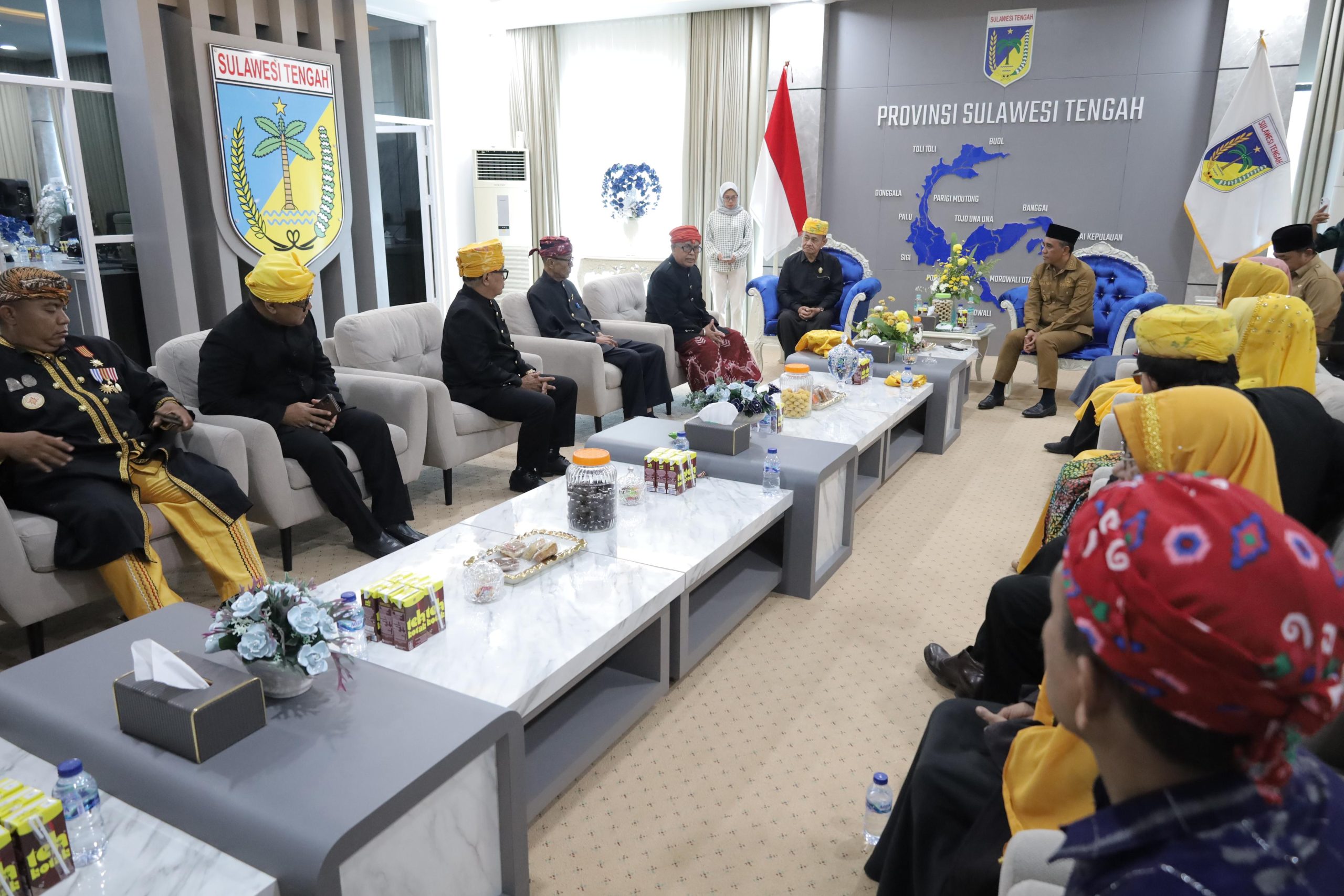 PALU – Gubernur Sulawesi Tengah, Anwar Hafid, menerima audiensi pengurus Badan Musyawarah Adat (BMA) Provinsi Sulawesi Tengah di ruang kerjanya, Selasa, 2/9.