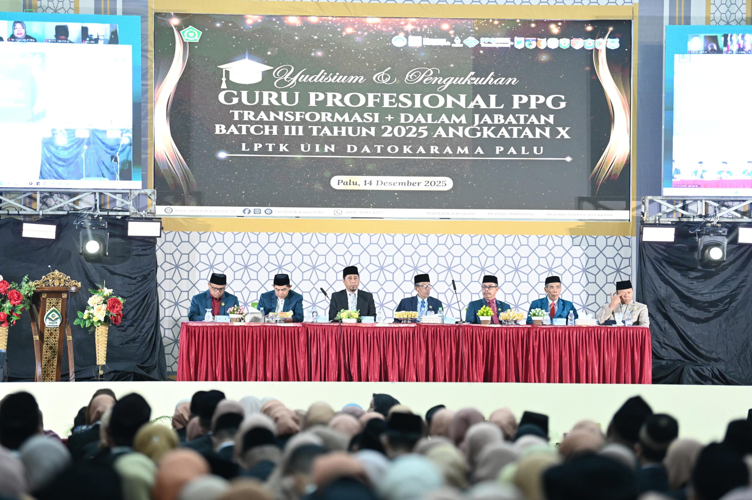 Komitmen tersebut diwujudkan melalui pembukaan Yudisium dan Pengukuhan Guru Profesional Program Pendidikan Profesi Guru (PPG) Transformasi Dalam Jabatan Batch III Tahun 2025 Angkatan X di UIN Datokarama Palu, Minggu 14/12.
